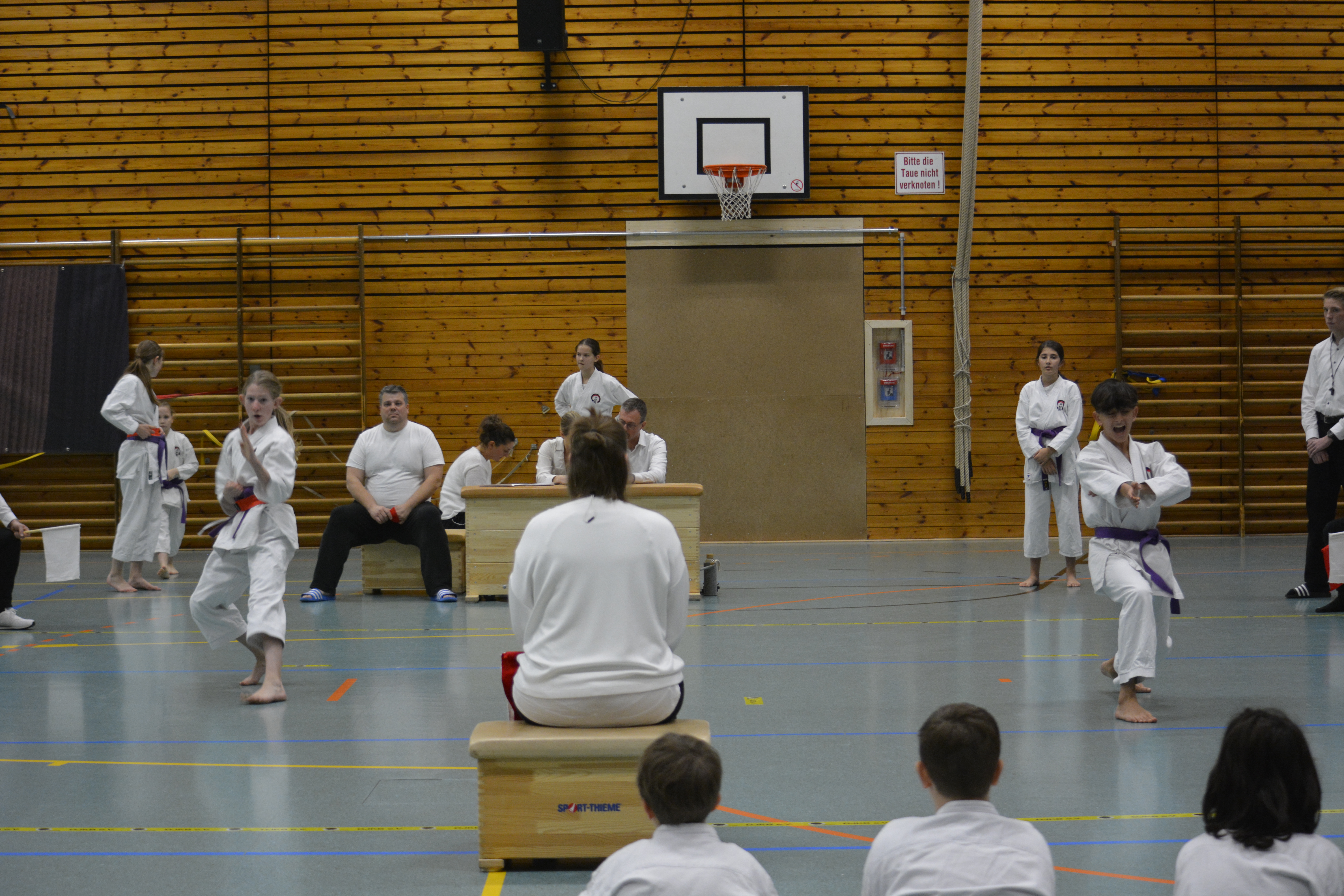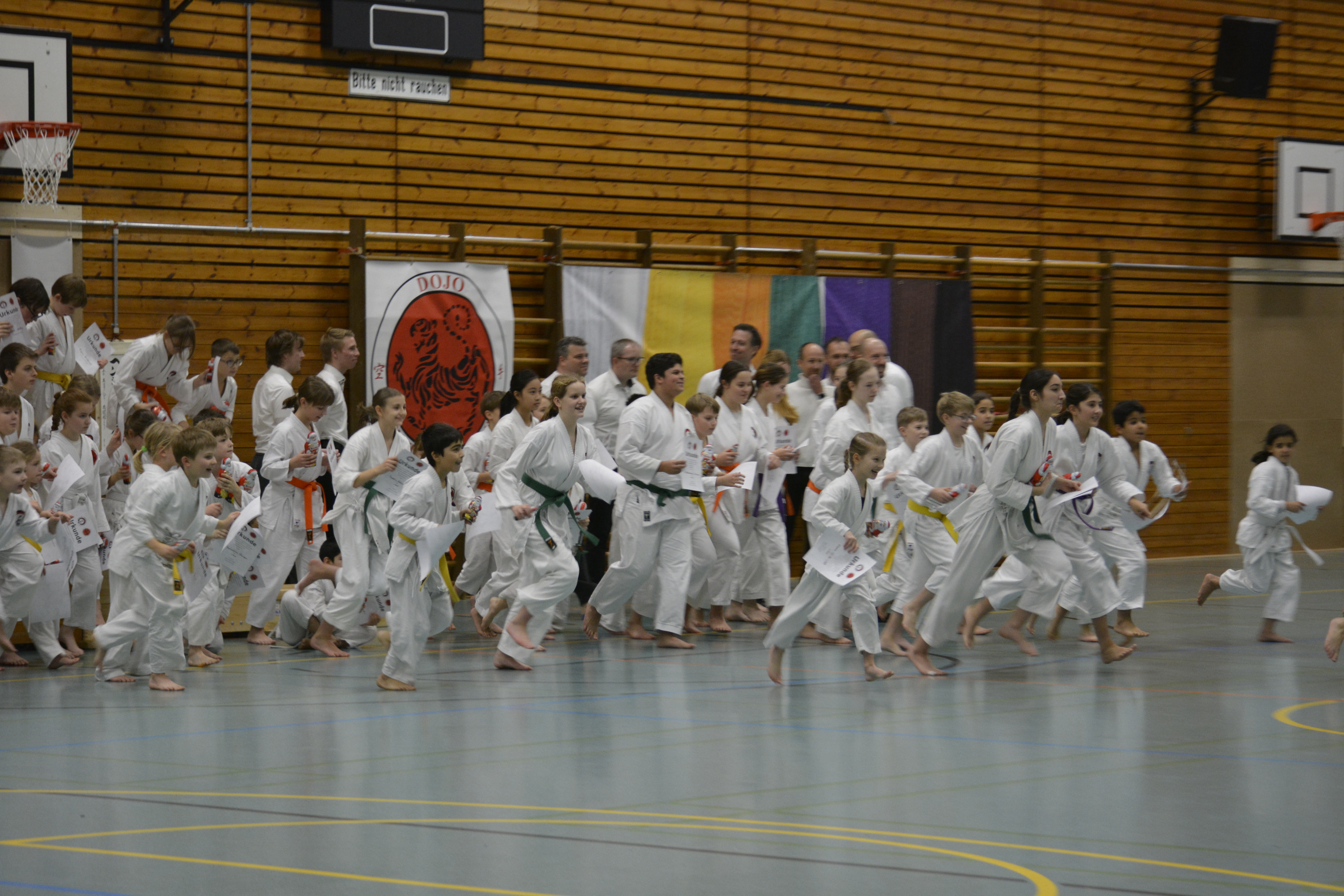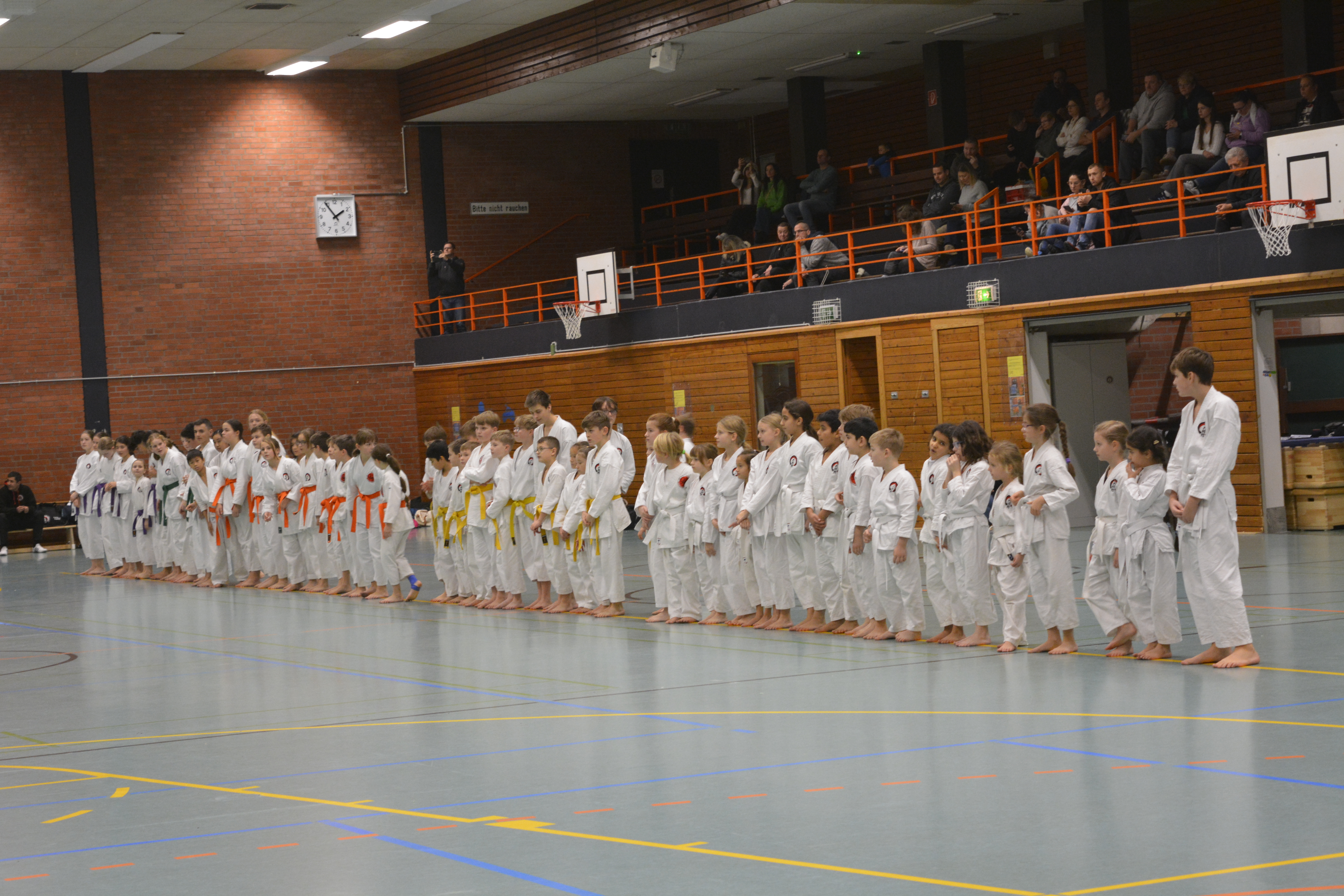 In 12 Gruppen - unterteilt nach Alter, Disziplin und Graduierung - zeigten die Nachwuchs-Athleten ihr Können in den Disziplinen Kata, Kihon-Ippon Kumite und Jiyu-Ippon Kumite. Die jungen Karateka beeindruckten dabei nicht nur mit hohem Einsatz und starkem Kampfgeist, sondern auch mit einem fairen Umgang und ausgesprochenem Sportsgeist. So herrschte trotz "Wettkampf" ein Gefühl des Miteinander, anstatt eines Gegeneinander.