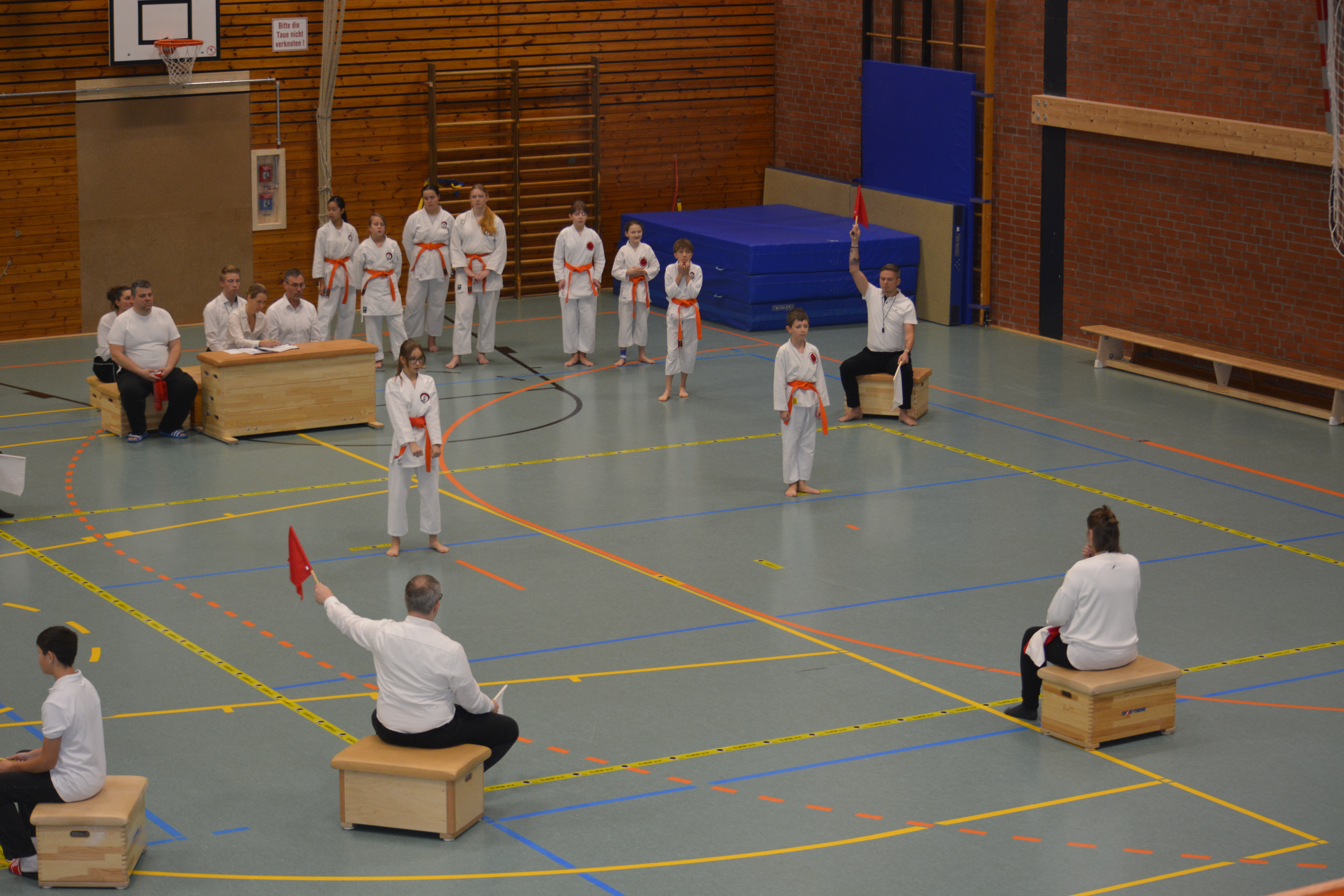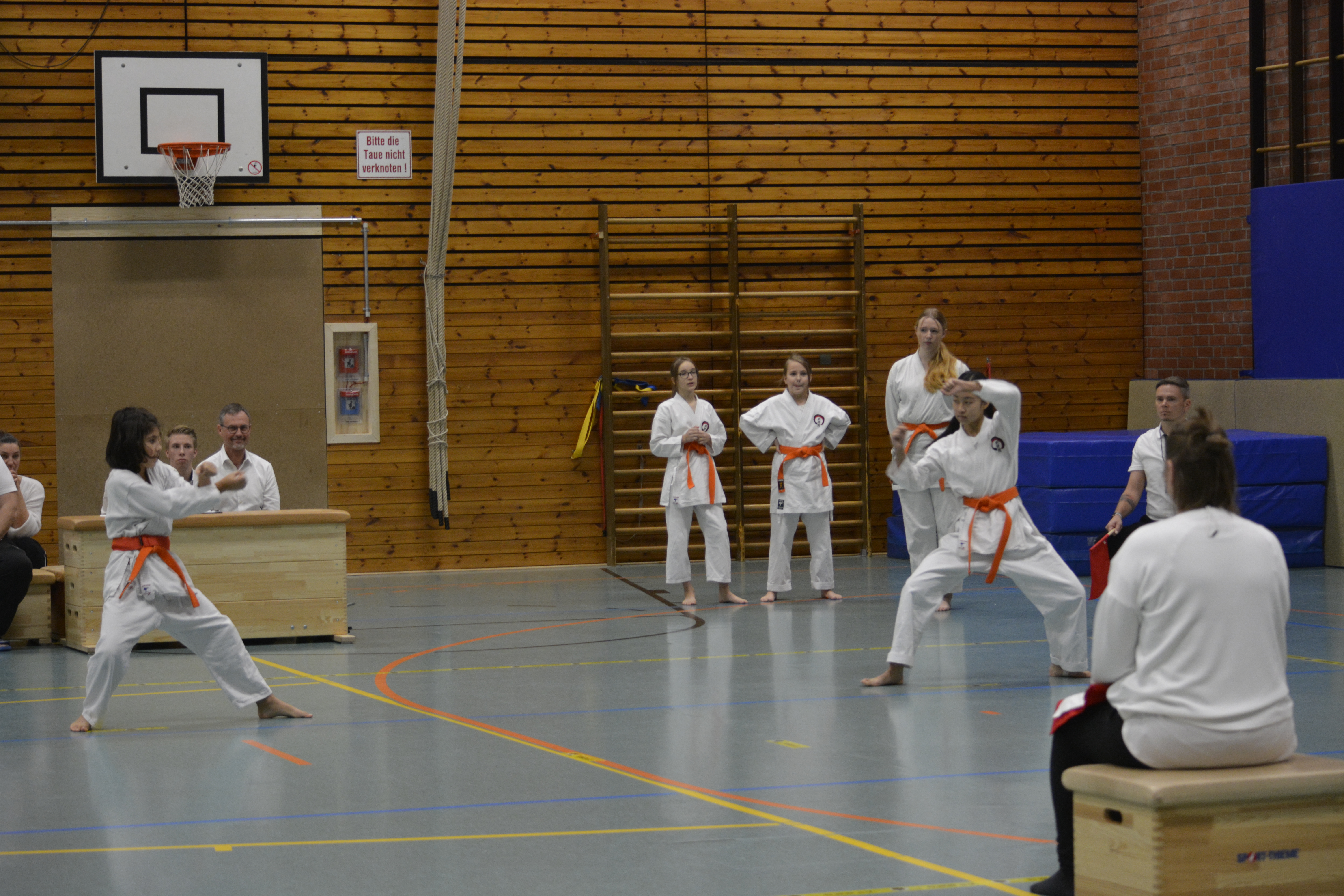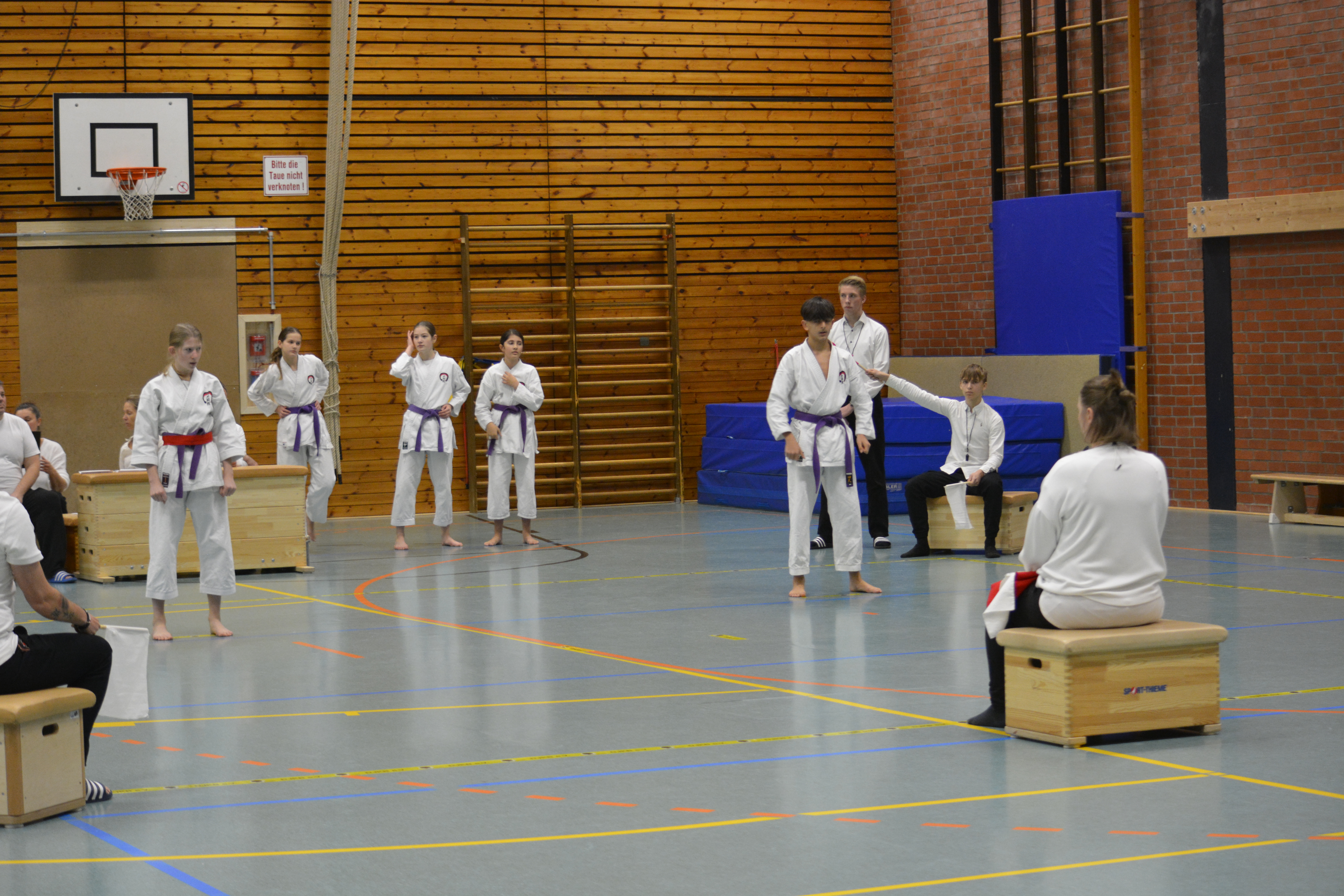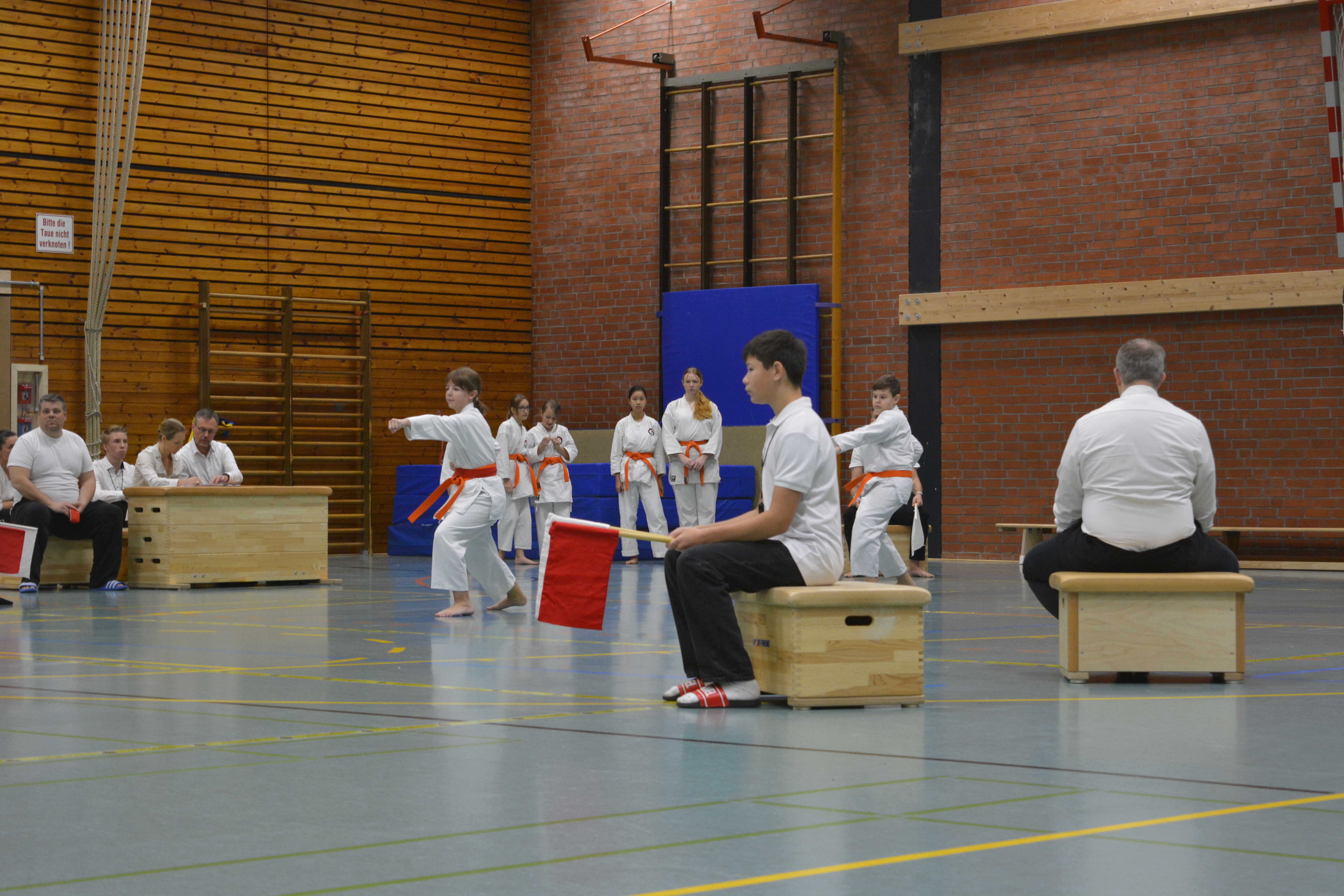 In 12 Gruppen - unterteilt nach Alter, Disziplin und Graduierung - zeigten die Nachwuchs-Athleten ihr Können in den Disziplinen Kata, Kihon-Ippon Kumite und Jiyu-Ippon Kumite. Die jungen Karateka beeindruckten dabei nicht nur mit hohem Einsatz und starkem Kampfgeist, sondern auch mit einem fairen Umgang und ausgesprochenem Sportsgeist. So herrschte trotz "Wettkampf" ein Gefühl des Miteinander, anstatt eines Gegeneinander.